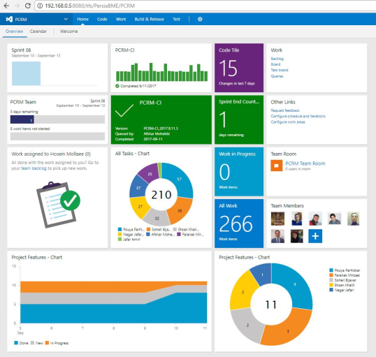 برای نگهداری Source Code ها و مدیریت موارد کاری در چارچوب Scrum و همچنین Build و Release اتوماتیک و Continuous Integration (CI) از Microsoft Team Foundation Server 2018 استفاده می کنیم.